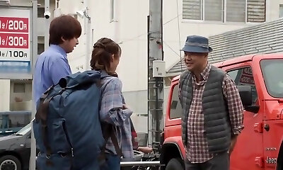 Two naughty dudes pulverize a naughty Japanese babe by Asian threesomes