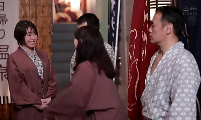 Japanese mature wifey thinks of spouse, but fucks 2 other guys