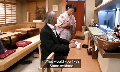 Old Japanese farmer caught his crazy maid fucking a carrot